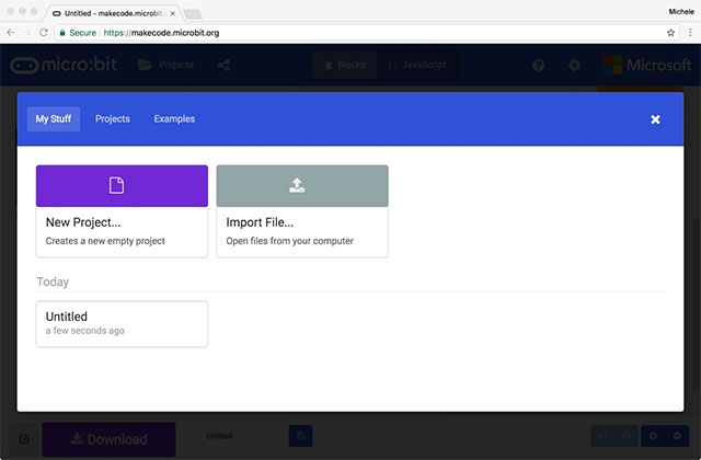 All’interno del “Microsoft Block Editor” click su “New project”.