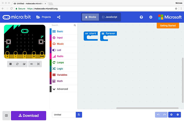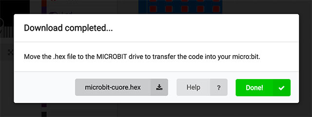 Per trasferire il programma sul micro:bit reale dovrete effettuare il Download del programma, scaricherete un file con estensione .hex