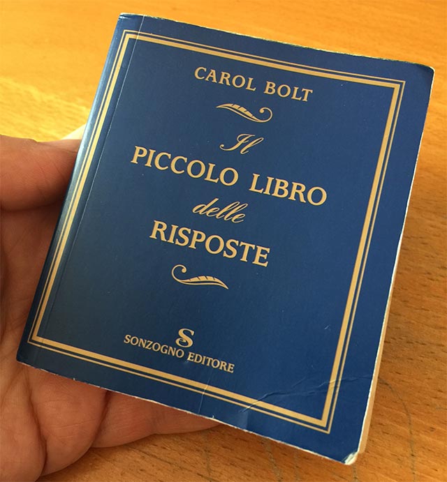 L’idea è quella di simulare quanto può essere fatto dal noto libro gioco di Carol Bolt: Piccolo libro delle risposte che ho usato tantissimo con i miei figli quando erano bambini.