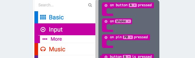 1. Dalla sezione “Input” selezioniamo la funzione “on shake”