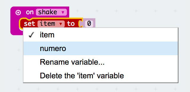 3. Trascinate nell’area di programmazione la funzione “set item to 0” ed cambiate la variabile in numero: