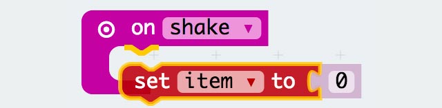 1. Selezionate dal menù delle istruzioni “on shake” e trascinatela all’interno dell’area di programmazione