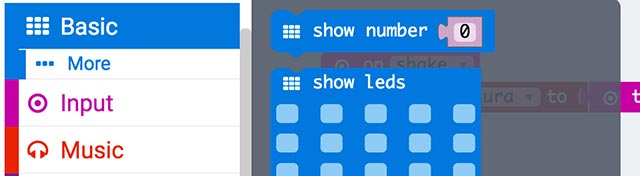 1. La visualizzazione della temperatura sul display avviene utilizzando l’istruzione “show number”, il valore da visualizzare sarà quello restituito dalla funzione “temperature (°C)