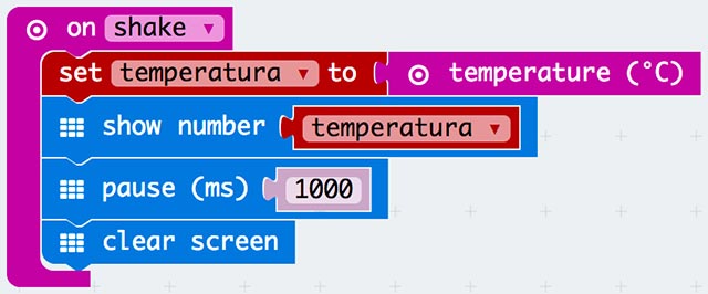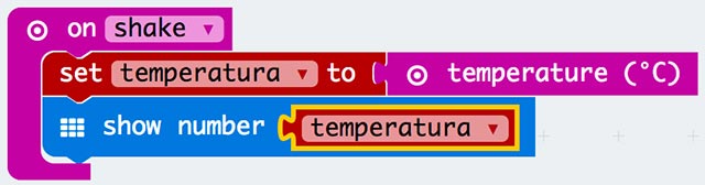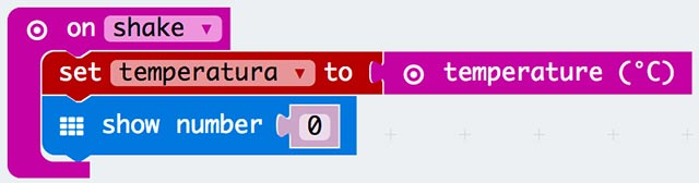 In questa lezione utilizzeremo il sensore di temperatura presente sulla nostra scheda per mostrarla sulla matrice di LED quando scuotiamo il micro:bit