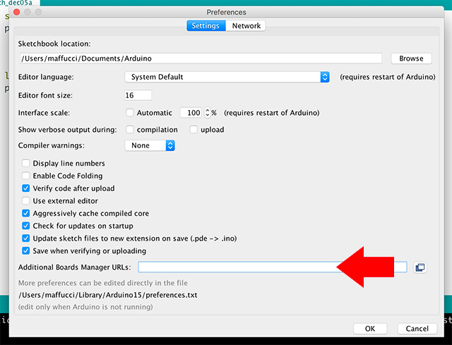 Avviate l’IDE Arduino e dal menù File > Preferences