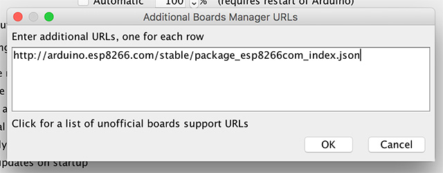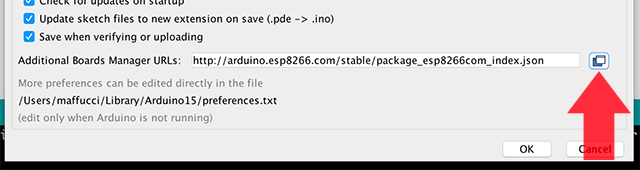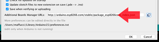 Individuate all’interno del pannello “Additional Boards Manager URLs”