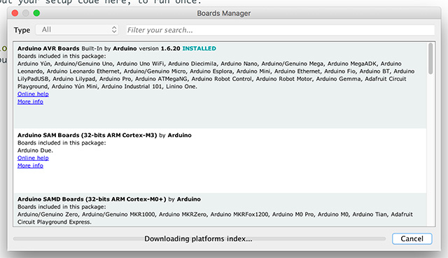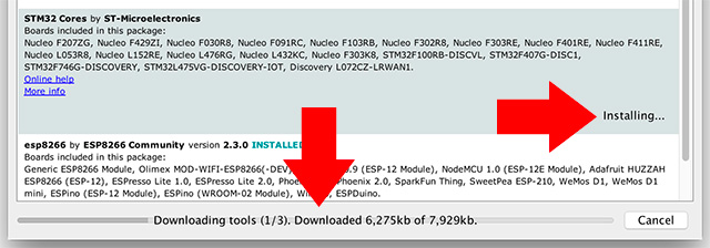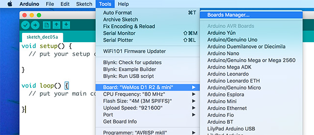 Click su “Tools” menu e “Boards > Boards Manager…”