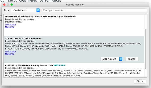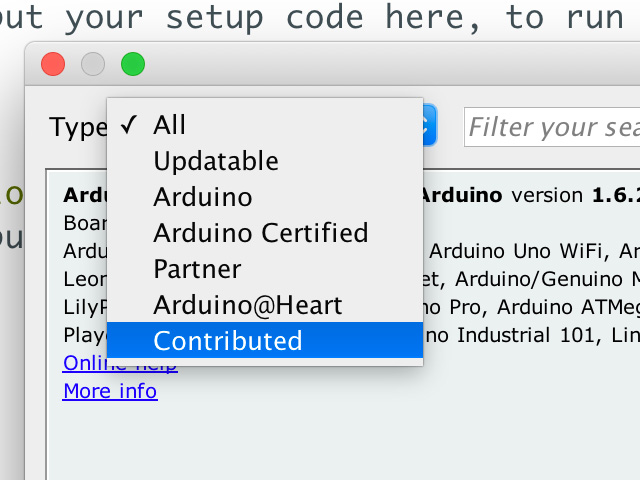 Sul sito Arduino trovate una pagina specifica che spiega come usare il “Boards Manager”, seguite il link per maggiori informazioni. Installing additional Arduino Cores