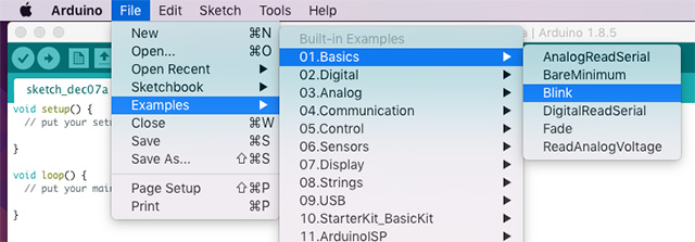 Come primo test utilizzo lo sketch Blink variandone la velocità di accensione ed effettuate l’upload sulla scheda dovreste notare che il LED LD1 diventa per un istante verde e successivamente il LED LD2 lampeggia alla frequenza che avete impostato.