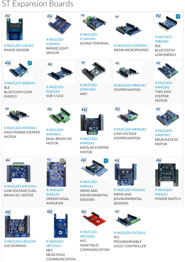 ST mette a disposizione diverse shield con molte funzionalità: controllo motori, WiFi, Bluetooth LE, RFID, GPS, sensori di prossimità e molto altro. Di seguito link alla pagina di riferimento delle ST Exspansion Board