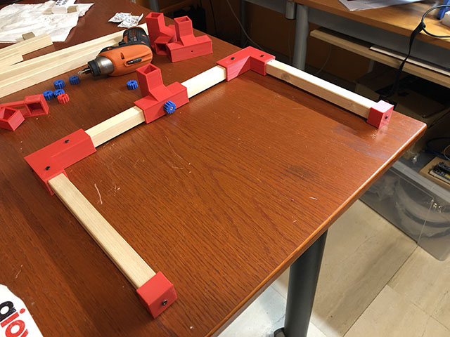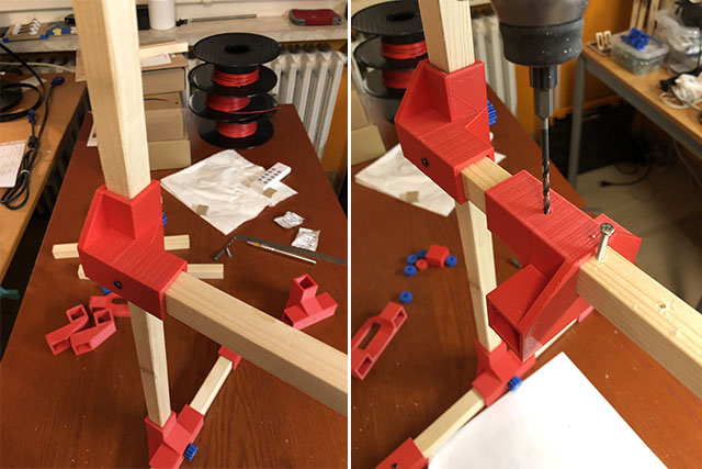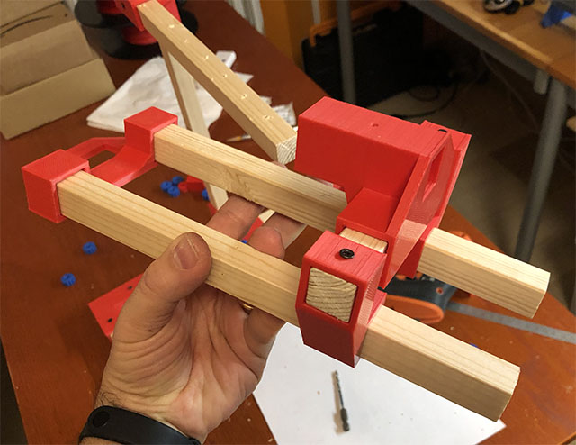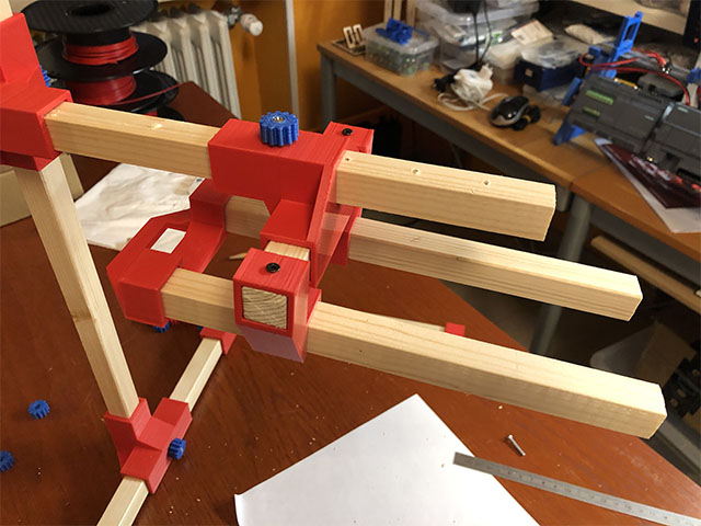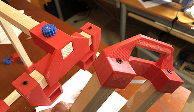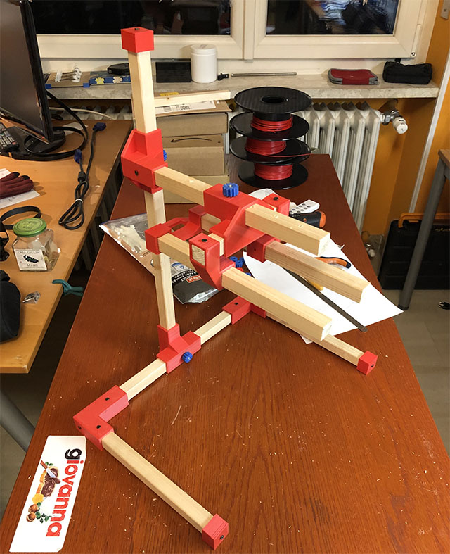 • 14 elementi stampati in 3D utilizzati come giunti, carrelli e pomelli di serraggio;