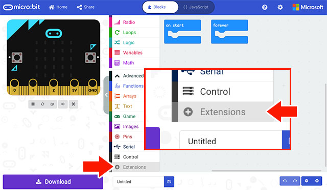Aprite un nuovo progetto dall’ambiente grafico di programmazione di micro:bit.