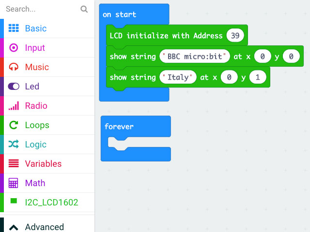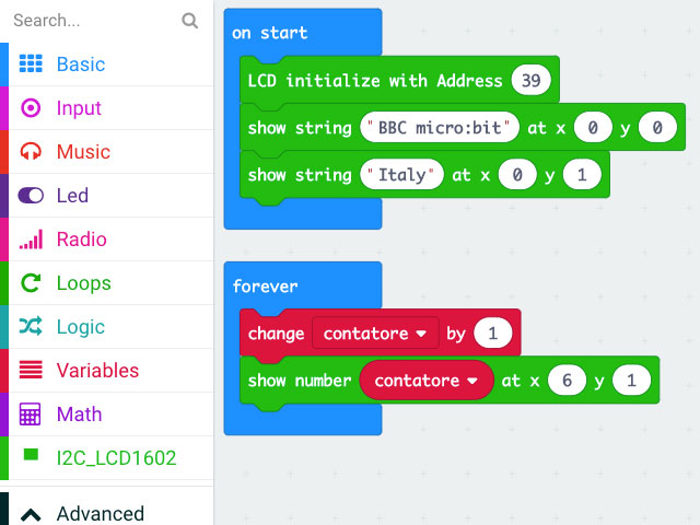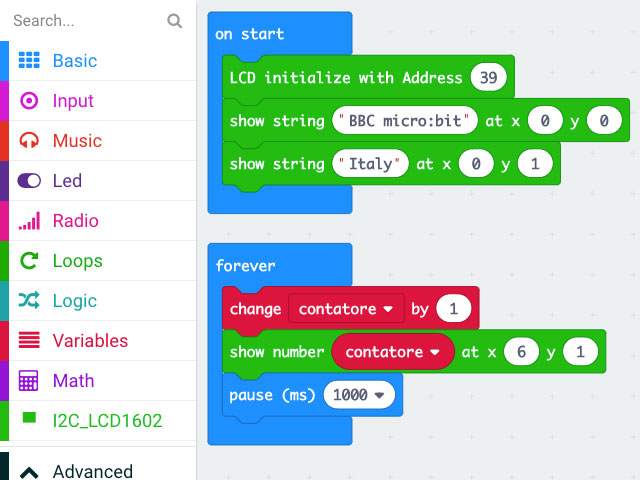 2 pensieri su “Gestire con micro:bit un display 1602 I2C