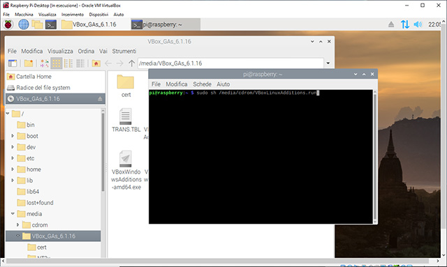 Per ottimizzare la configurazione è necessario installare le VirtualBox guest addition.
