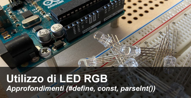 Scrivo questa lezione come approfondimento della guida realizzata tempo fa: Arduino – lezione 09: uso di LED RGB in cui mostravo come funzionano e come si gestiscono i LED RGB con Arduino. Negli esercizi proposti utilizzavo un LED ad ANODO comune. In questa nuova lezione utilizzerò un diodo a CATODO comune e mostrerò tre esempi, nel primo ripropongo in una modalità diversa l’esercizio della prima lezione in cui faccio alcuni approfondimenti sull’uso della direttiva #define, mentre nel secondo e terzo esercizio viene mostrato come impostare il colore emesso dal LED RGB mediante input da tastiera su Serial Monitor richiamando con questi esempi l’uso del qualificatore const per una variabile e l’utilizzo della funzione parseInt(). Come sempre nei commenti, all’interno del codice, trovate la spiegazione del funzionamento di ogni parte dello sketch.