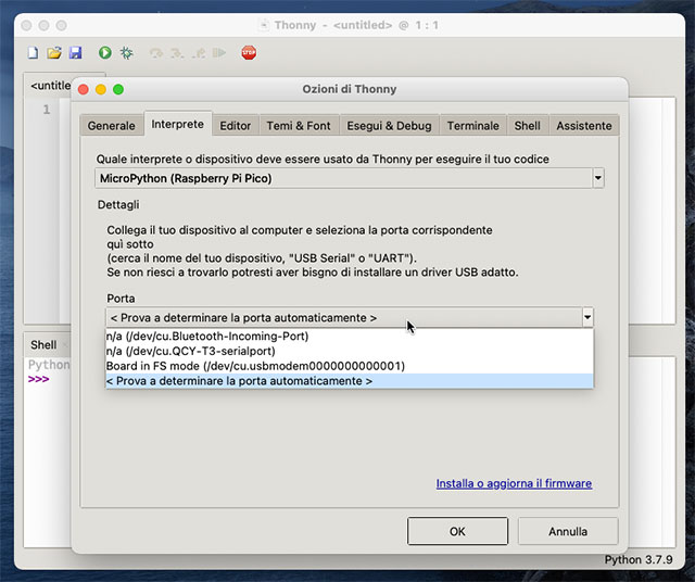 Installiamo l’IDE Thonny per programmare in MicroPython.