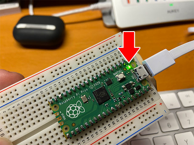 Dopo che avete effettuato le saldature dei pin abbiamo bisogno di installare MicroPython sulla scheda. Colleghiamo un cavo micro USB alla porta micro USB del vostro Pico.