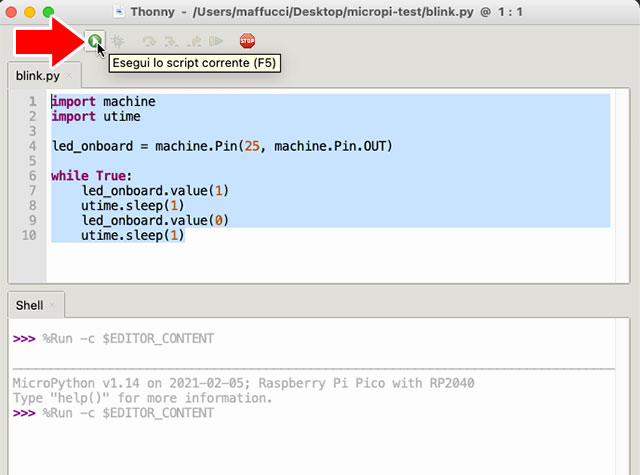 Bene! Ora siete pronti per iniziare a programmare in MicroPython su Raspberry Pi Pico! 🙂