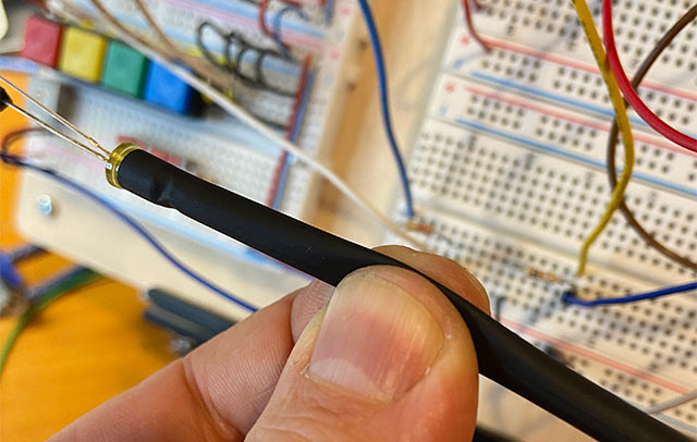 l’acquisto da parte della scuola o mia non è un problema, ma la terza soluzione è quella che in questo momento prediligo, perché può essere realizzata in 5 minuti, credo che possa gratificare di più lo studente Maker in erba 🙂 , inoltre ritengo importante che gli allievi assumano la capacità di costruire il sensore perché ne dovranno ottimizzare l’uso, scontrandosi inevitabilmente con una serie di variabili fisiche che dovranno gestire.