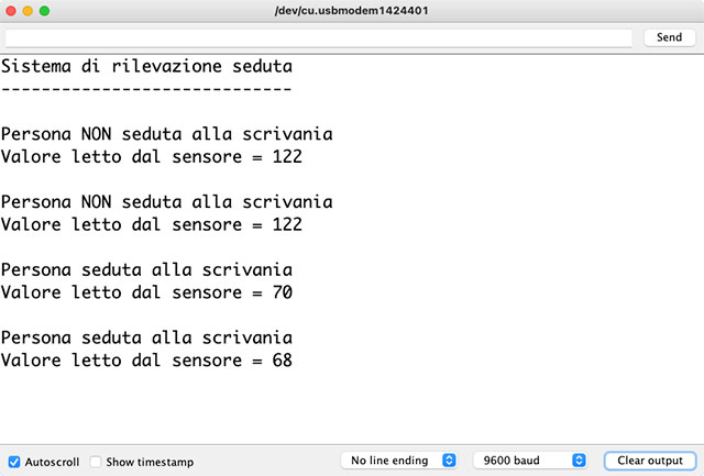 Serial.println("Persona seduta alla scrivania"); // segnalazione di presenza persona