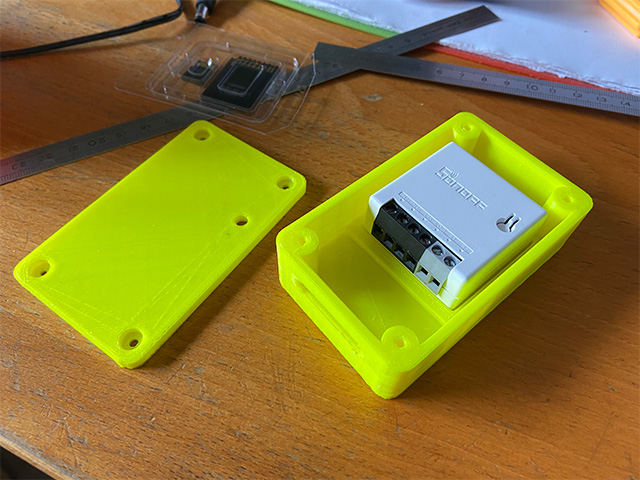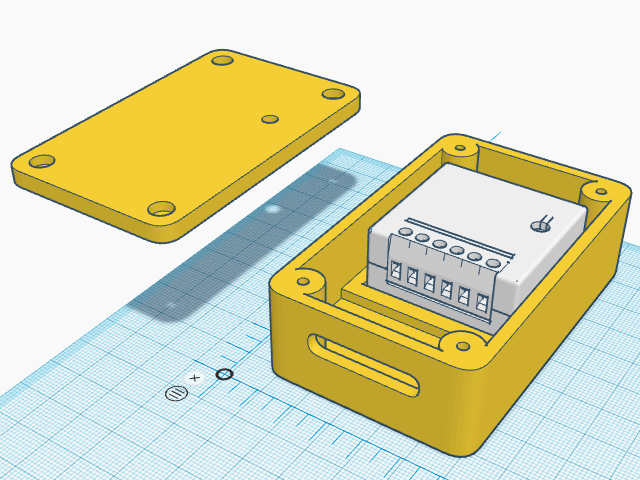 Per chi desidera condivido i sorgenti per un piccolo progetto, un contenitore per ospitare un Sonoff Mini per le versioni R1 e R2 realizzato per la demotica di casa mia.