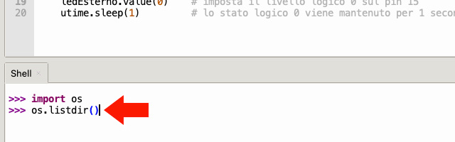 Posizionate il cursore nella prima riga della Shell e digitate il comando. Inseriremo una serie di comandi terminali in Python: