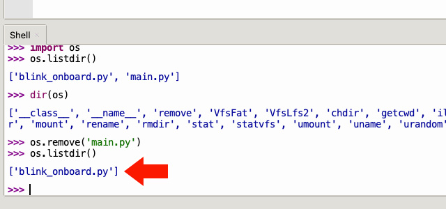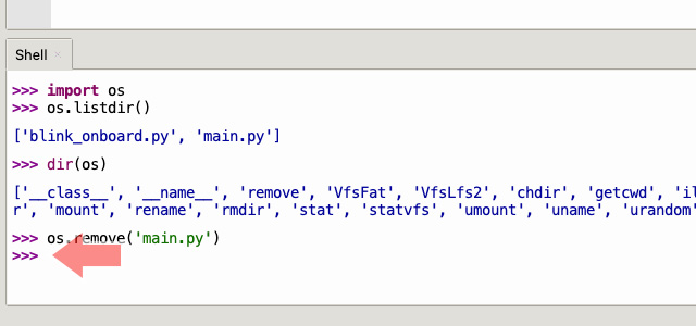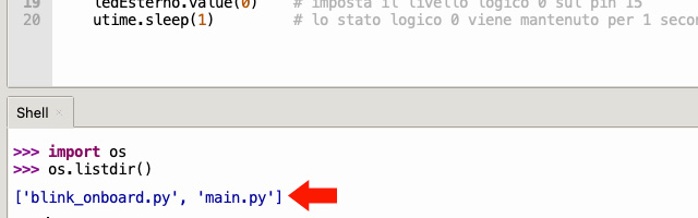 da cui si evince che all’interno del mio PiPico sono presenti due file: blink_onboard.py e main.py