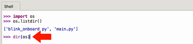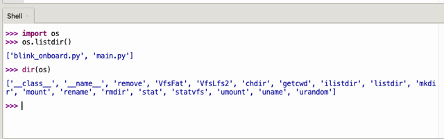 in Python “import os” consente di importare i moduli necessari per interfacciarsi con il sistema operativo sottostante su cui Python è in esecuzione ed eseguire una serie di operazioni sui file, come ad esempio la cancellazione, lo spostamento dei file, rinominare file, creare directory e molto altro. Poichè con MicroPython non si ha nessun sistema operativo il modulo os fornisce tutte quelle funzioni relative alla gestione del semplice del file system e le informazioni relativo al sistema.