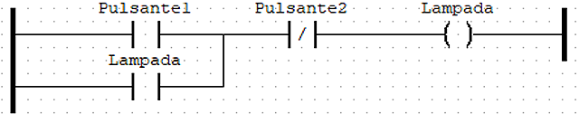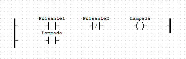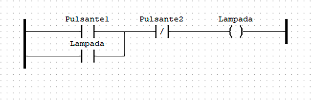 All’avvio del programma la Lampada risulta spenta, quando si preme Pulsante1 anche per un piccolo istante, il circuito accende la Lampada (in quanto non viene premuto anche Pulsante2). Una volta accesa, il contatto della bobina Lampada bypassa il Pulsante1 sul circuito per accendersi continuamente anche dopo che Pulsante1 non viene più premuto. Per spegnere la Lampada premere Pulsante2. Poiché Pulsante2 è un contatto negato, una volta premuto aprirà il circuito, spegnendo quindi la Lampada. In altro modo possiamo dire che premendo Pulsante2, la bobina Lampada non viene più alimentata ed il suo contatto commuta, pertanto la Lampada si spegnerà.