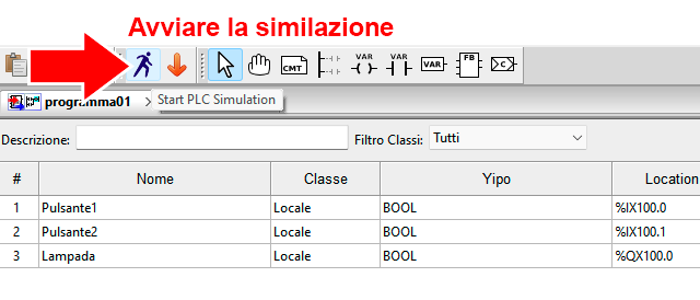 | Pulsante1 | Local | BOOL | %IX100.0 |