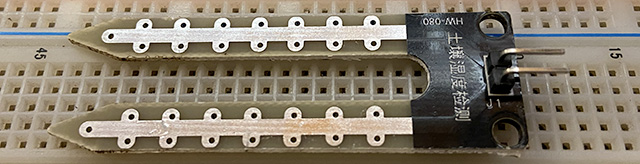 Questo sensore, così come il “water sensor” di cui ne abbiamo analizzato il funzionamento nella precedente lezione, è soggetto a deterioramento se esposto ad ambiente umido. L’alimentazione applicata alla sonda accelera l’ossidazione delle parti conduttive della forcella. Per evitare un rapido degrado è consigliabile fornire alimentazione solo quando bisogna effettuare la lettura.