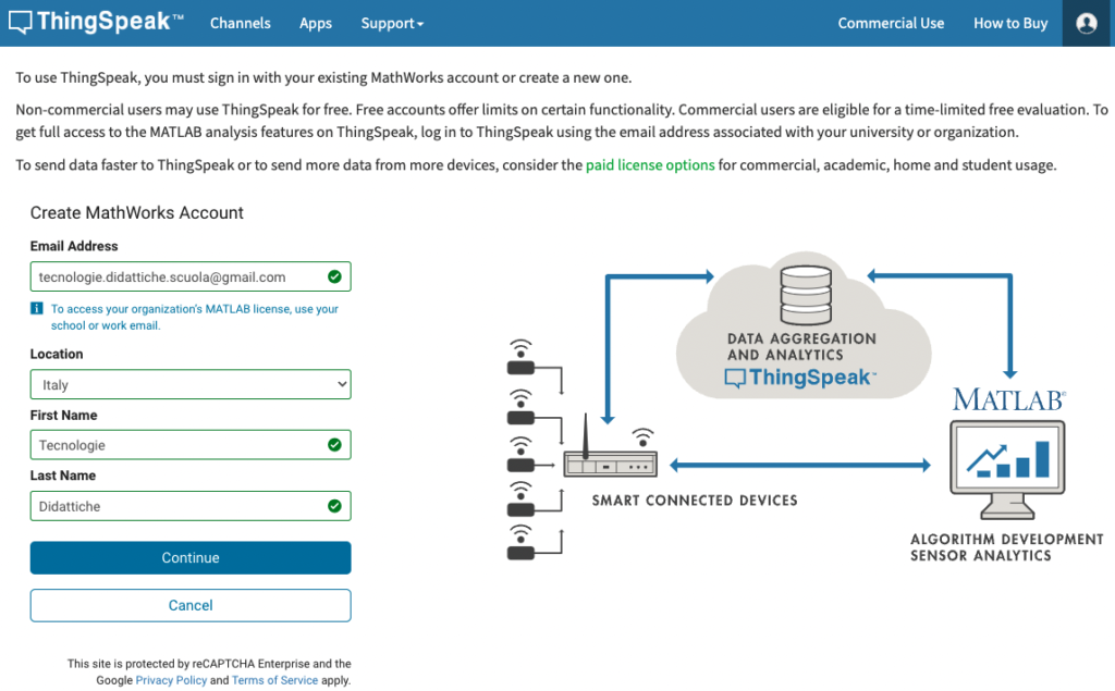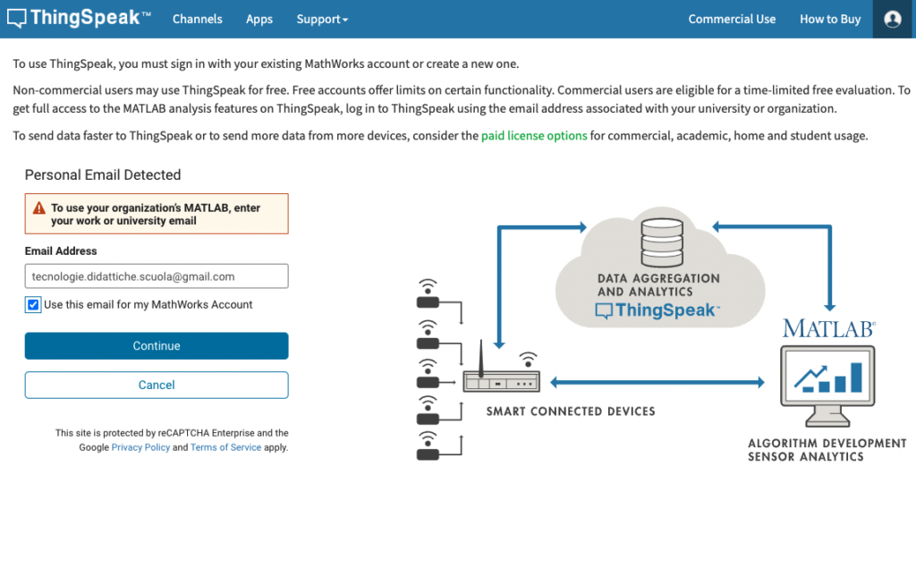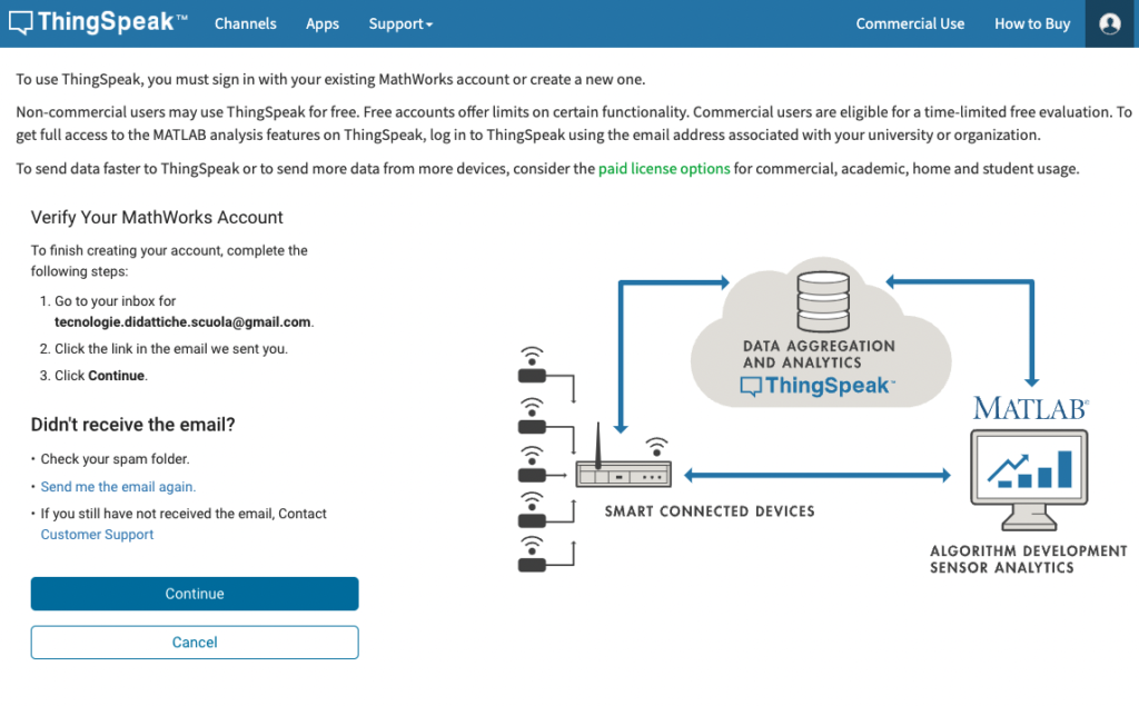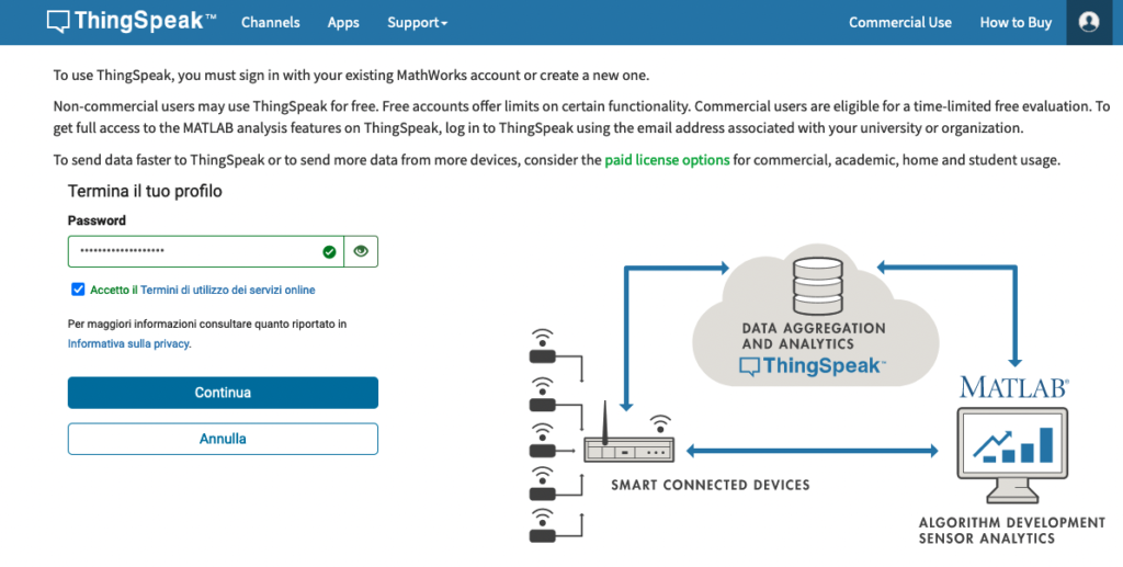Il servizio online può essere utilizzata in modalità gratuita e a pagamento, la versione gratuita è limitata solamente nel numero di apparati hardware che possono essere connessi e nella quantità di dati che possono essere visualizzati nel tempo sulla piattaforma, ma per un uso didattico è più che sufficiente.