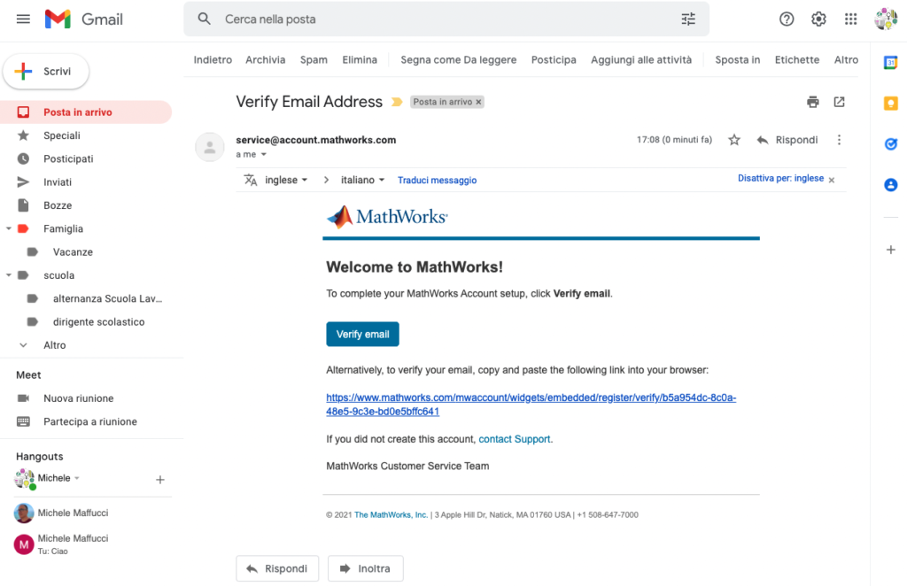 Aggiungete la spunta sul campo “Use this email for my MathWorks Account”