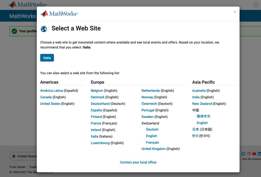 Selezionare la nazionalità per personalizzare la lingua del servizio web