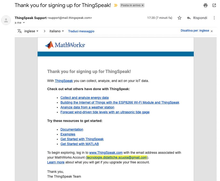 In questo tutorial suddiviso in 3 puntate che verranno pubblicate nei prossimi tre giorni, mostrerò come usare ThingSpeak, software cloud che permette di aggregare, visualizzare e analizzare flussi di dati in tempo reale nel cloud di ThingSpeak provenienti da dispositivi IoT. ThingSpeak è un servizio di MathWorks nota azienda produttrice del software matematico MATLAB.