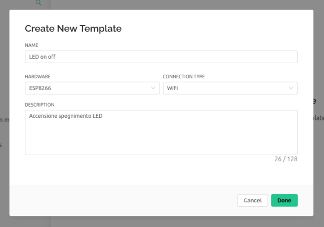 • Creazione di un template per un’applicazione IoT per il controllo dell’accensione di un LED
