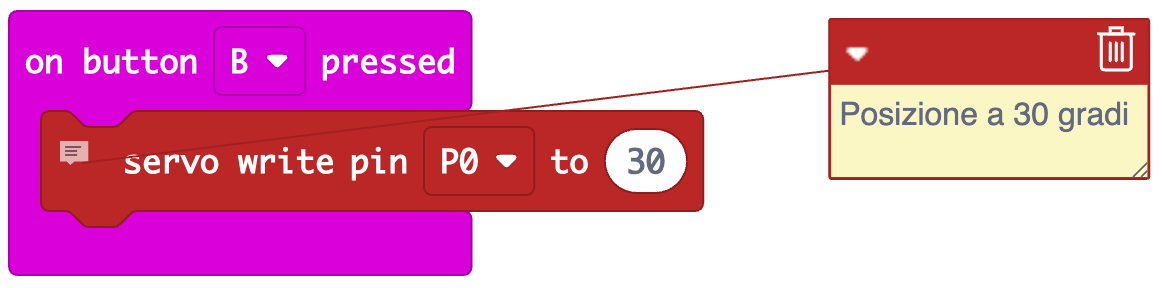 - La pressione del pulsante B permette di spostare a 30 gradi l’asse del servomotore favorendo così la rimozione della bustina di tè.