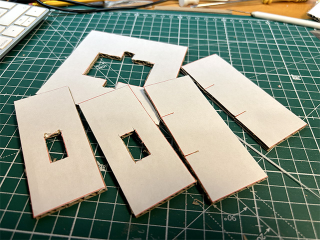 Questa sarà la modalità di allineamento delle cinque facce. Ricordate che i fori rettangolari dove inserire i servomotori non sono centrati rispetto alla faccia.