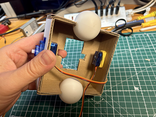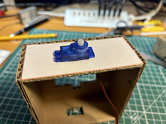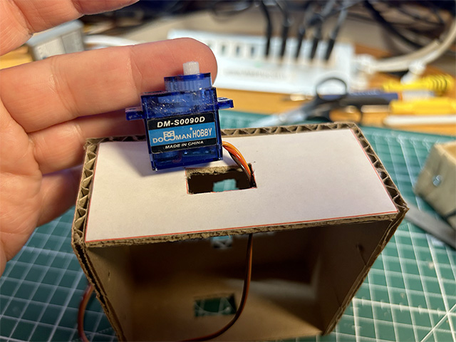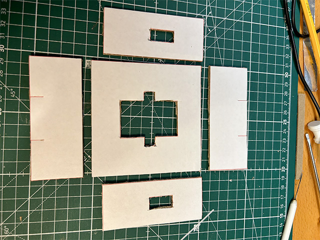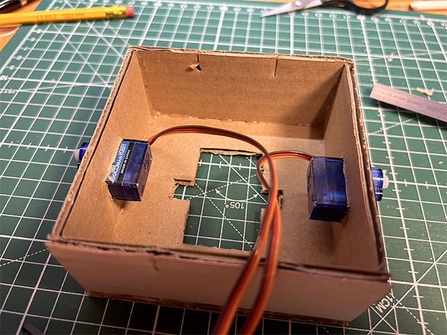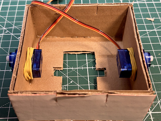 Incollare le cinque facce tenendo in conto che la parte superiore si poggia sulle restanti quattro facce, mentre le parti in cui vanno inseriti i servomotori dovranno essere incastrati tra le altre facce.