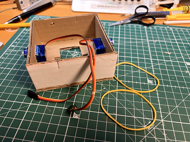 Procurarsi due elastici da utilizzare per bloccare i servomotori: