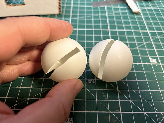 Prendere due palline da Ping Pong realizzare una fessura che abbia una larghezza di 4 mm ed una profondità di 15 mm: