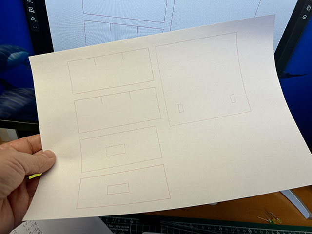 Allego il file PDF con i profili ritaglio in colore rosso. Nel video allegato ho usato un foglio A4 adesivo bianco, ma è possibile utilizzare anche un comune foglio di carta che potrà essere incollato al cartone.