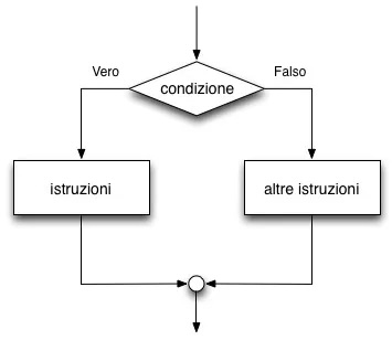 Come rappresentato dal diagramma di flusso che segue, la struttura if…else è composta da tre sezioni, la prima è costituita da un blocco “condizione” che controlla il verificarsi di una determinata condizione logica, se la condizione risulta “Vera” viene eseguito il blocco “istruzioni” altrimenti, se “Falso” viene eseguito il blocco “altre istruzioni”: