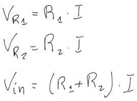 Per la legge di Ohm avremo che la differenza di potenziale ai capi di ogni resistore e la tensione totale Vin sarà: