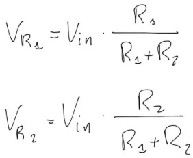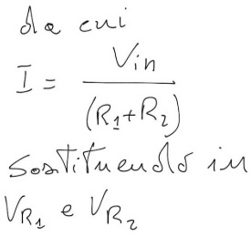 Da cui le due formule del partitore per ottenere la VR1 e VR2: