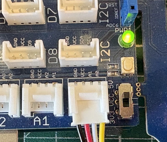 Nota: ricordate di impostare l’interruttore di alimentazione del Grove Base Shield su 5 V, altrimenti il valore massimo letto dal potenziometro sarà intorno a 675.