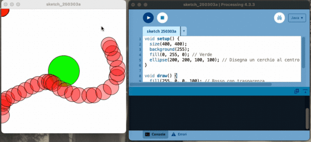 setup(). - Il cerchio rosso viene disegnato continuamente in