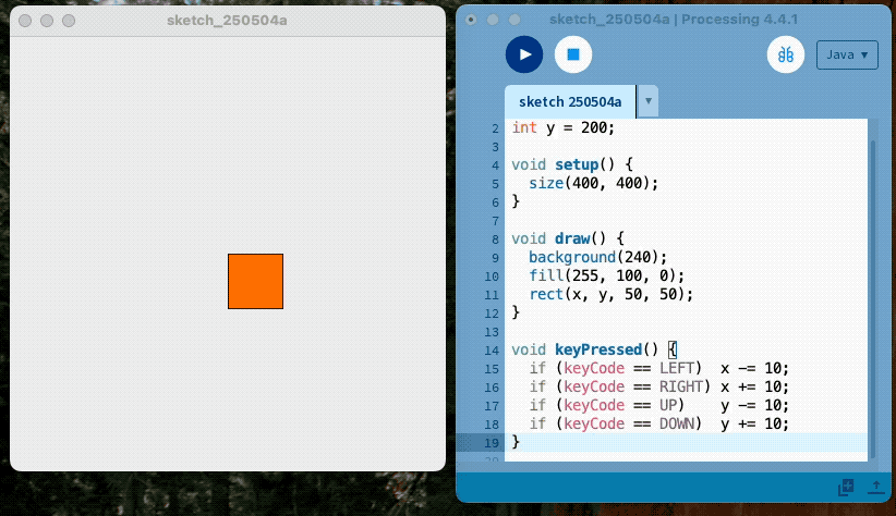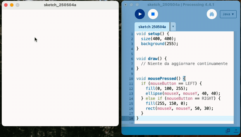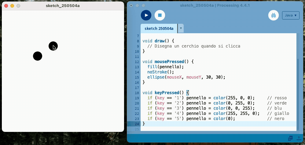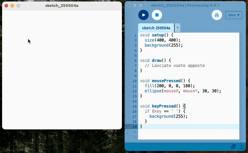 Rilevare eventi con mousePressed() e keyPressed() in Processing