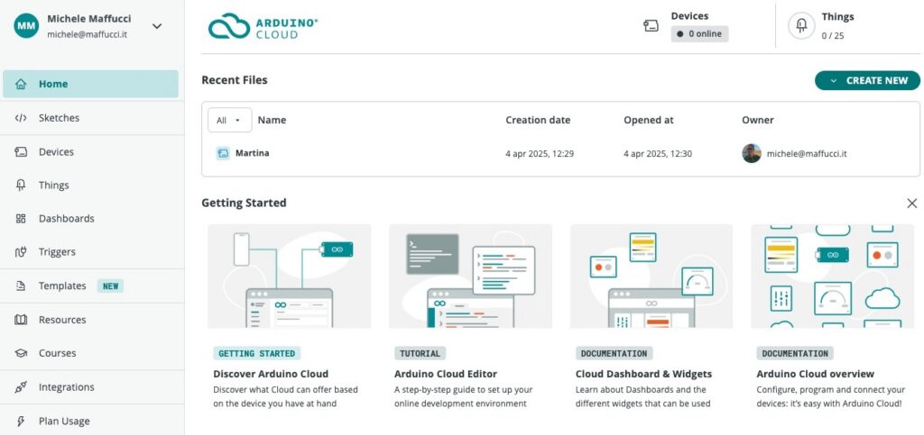 Prima di iniziare, se non avete mai utilizzato Arduino Cloud, vi consiglio di dare un’occhiata alla guida “Getting Started With the Arduino Cloud” che vi aiuterà a capire i concetti base e vi farà risparmiare tempo durante la configurazione, però durante le lezioni che seguiranno vi fornirò tutte le indicazioni.