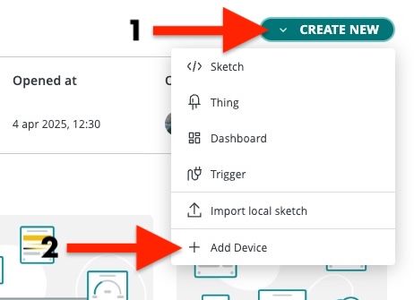 Clic su “CREATE NEW” e selezionare successivamente “+ Add Device”